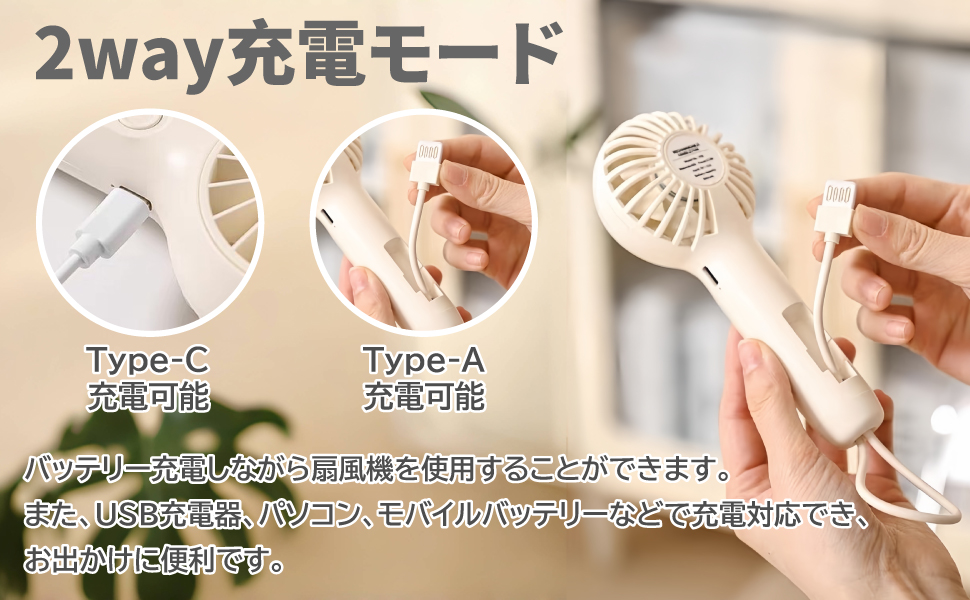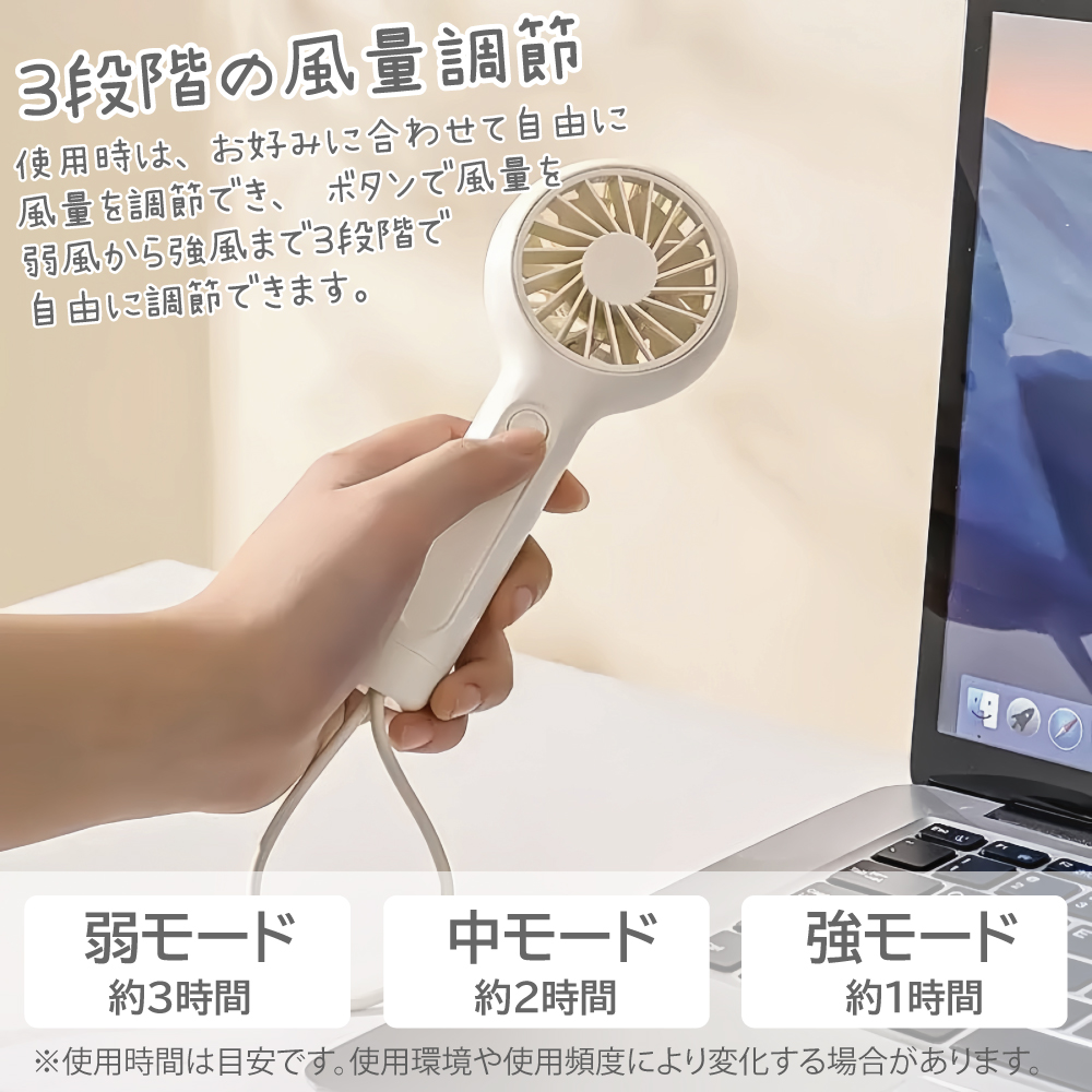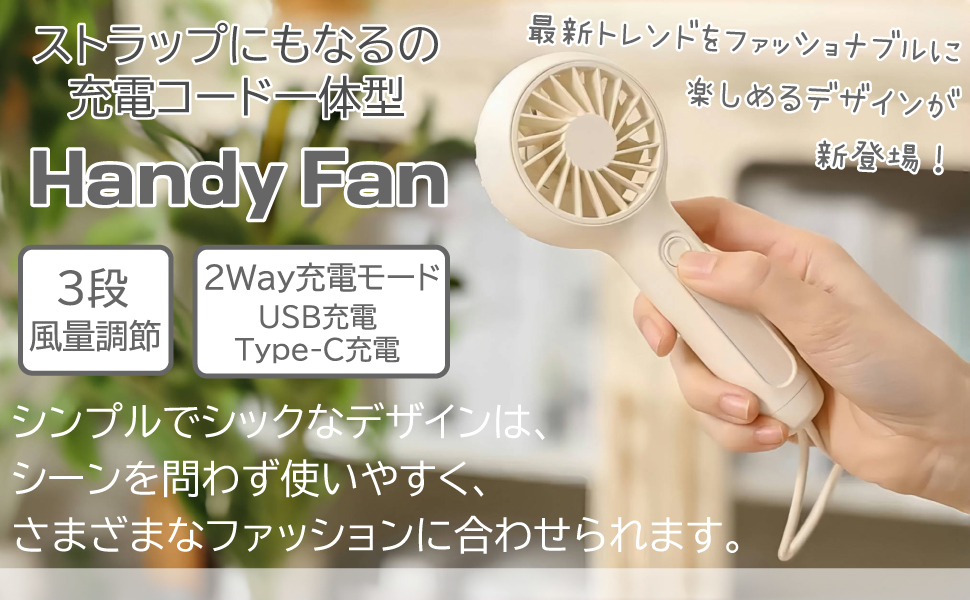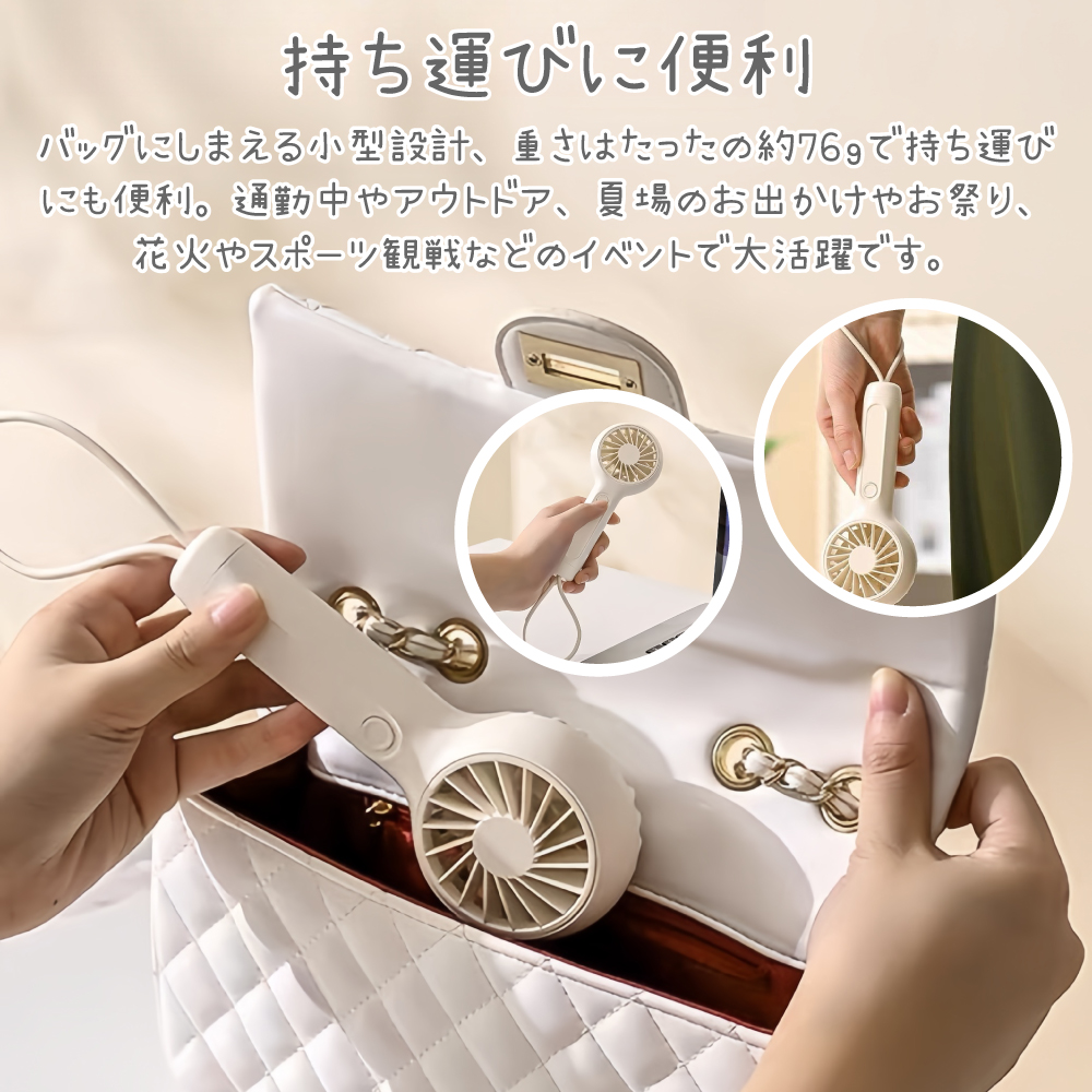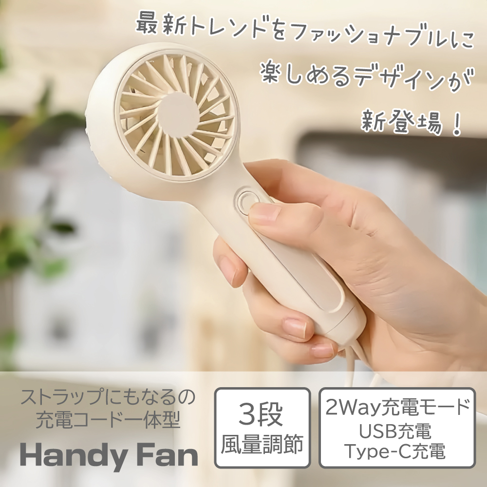 ハンディファン 手持ち扇風機 【2025新発売】 充電コード一体型 3段階風量調整 静音 USB充電 Type-C充電 対応 小型扇風機 軽量 スリム 携帯扇風機 手持ち ストラップ アウトドア 熱中症対策 冷感グッズ 父の日 プレゼント