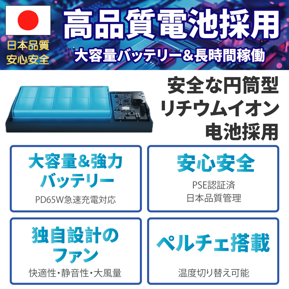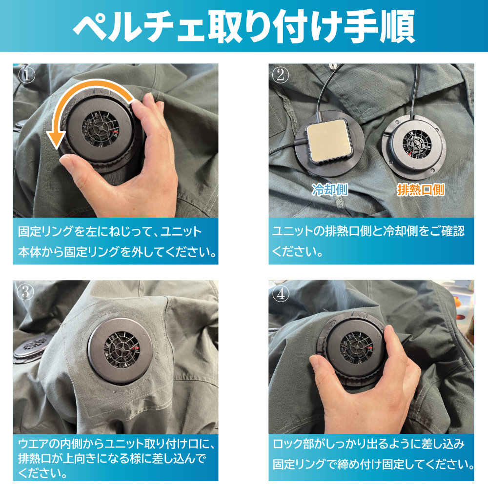 ペルチェ搭載 -20℃冷却効果 空調ウェア 瞬間冷却 ファン バッテリー ファン ペルチェ セット 3段温度調節可 5V専用 冷蔵服 エアコン服 冷感 空調作業服 空調扇風服 涼しい 熱中症対策 BCP対策 工事現場 通勤 工場 屋外