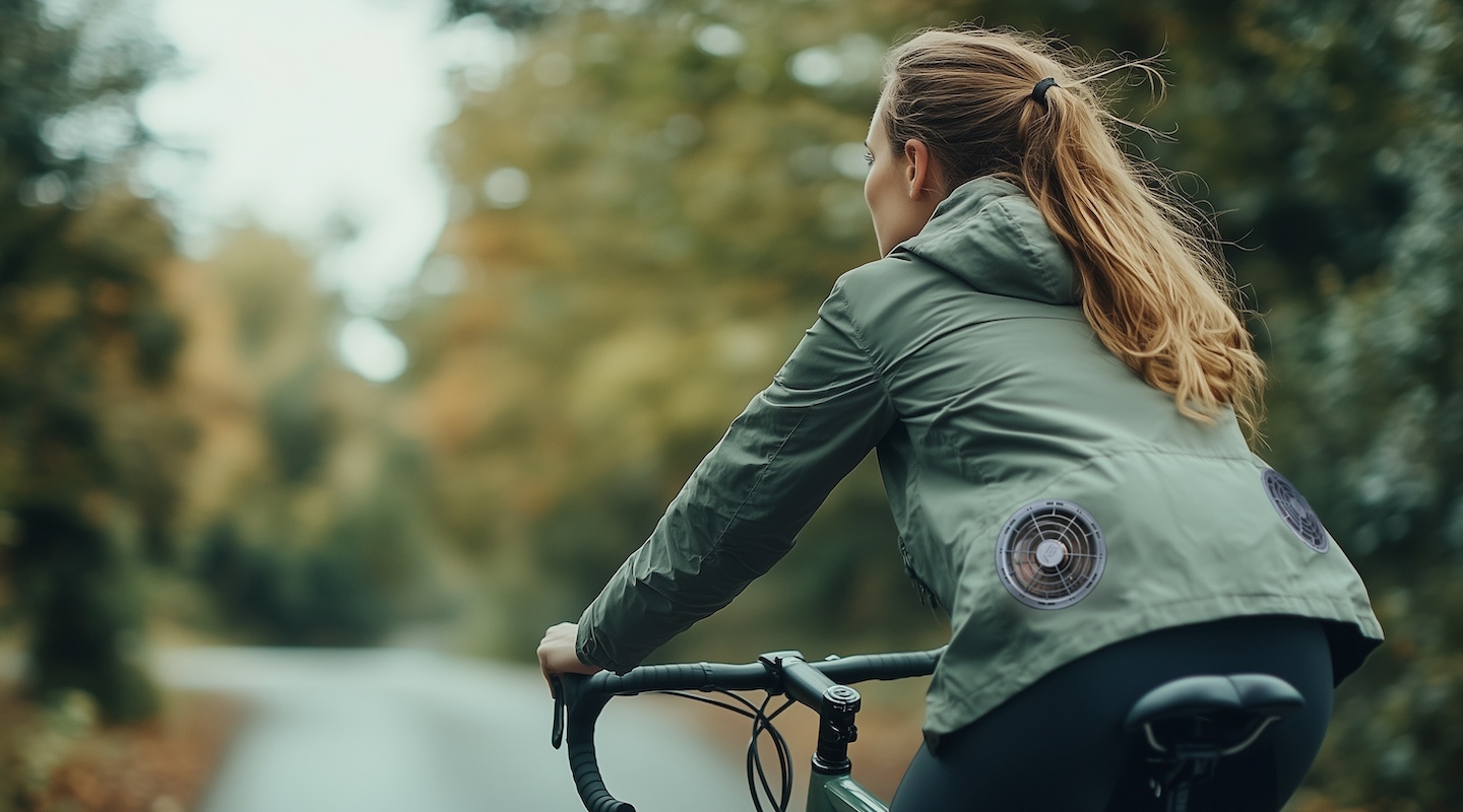 内蔵された高性能ファンが、服の中に風を循環させ、体温の上昇と汗のベタつきを防ぎます。