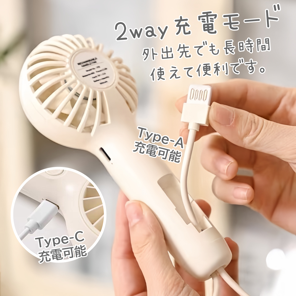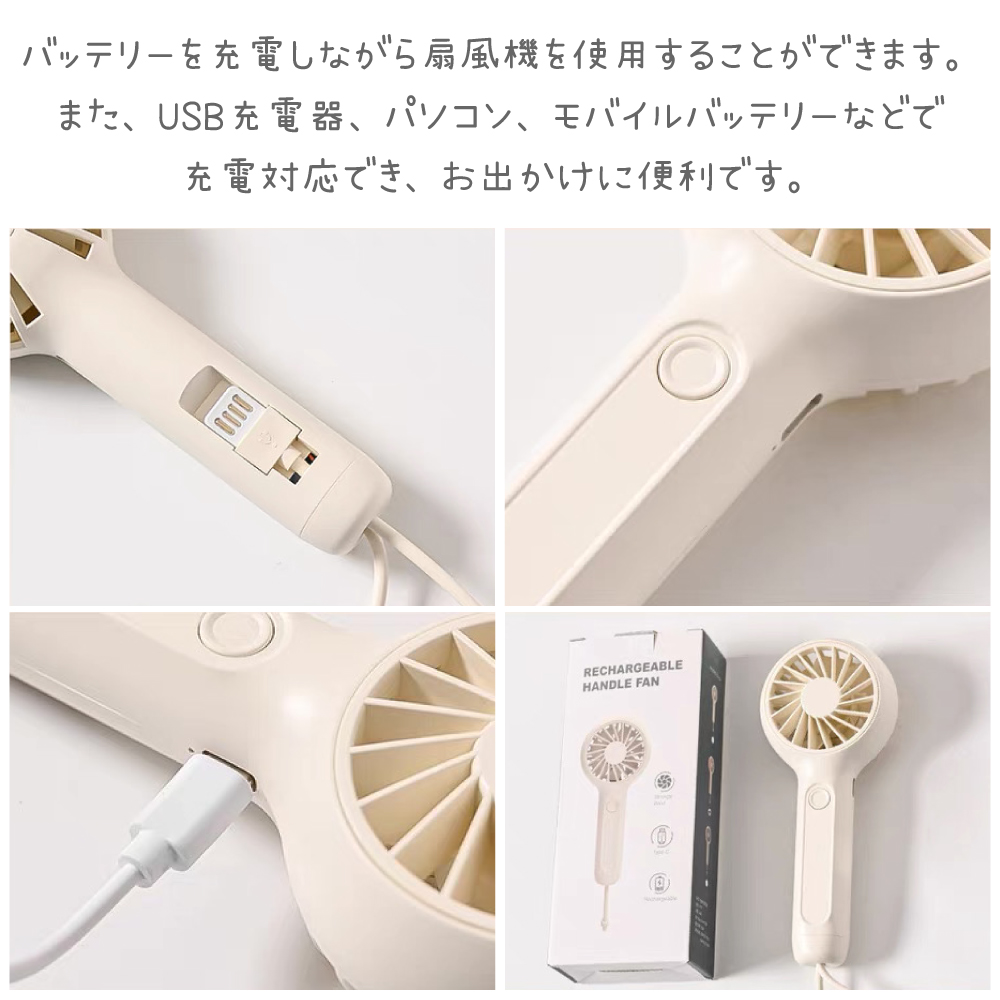 ハンディファン 手持ち扇風機 【2025新発売】 充電コード一体型 3段階風量調整 静音 USB充電 Type-C充電 対応 小型扇風機 軽量 スリム 携帯扇風機 手持ち ストラップ アウトドア 熱中症対策 冷感グッズ 父の日 プレゼント