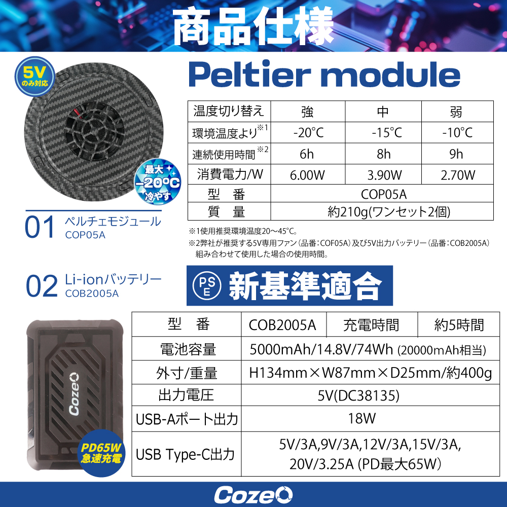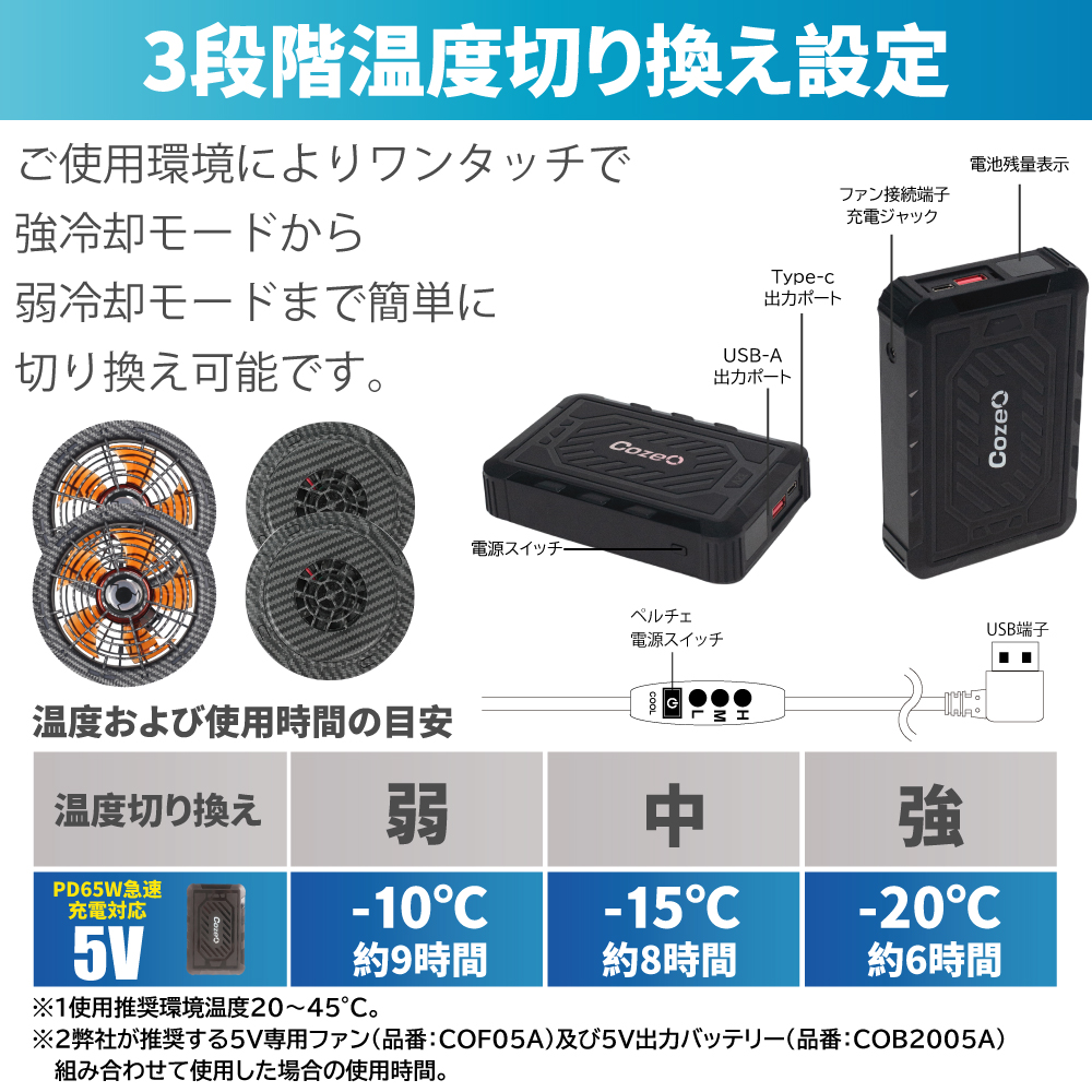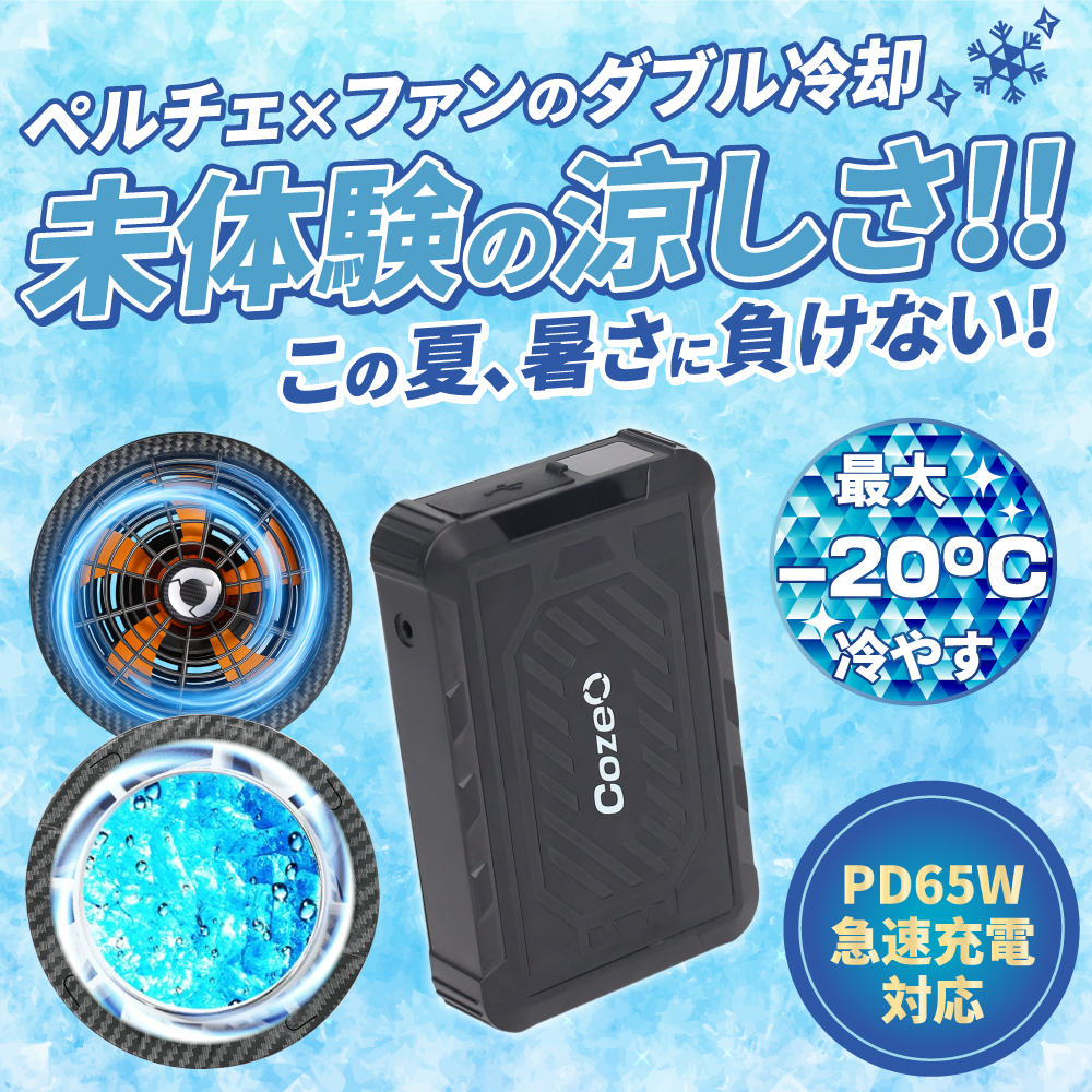 ペルチェ搭載 -20℃冷却効果 空調ウェア 瞬間冷却 ファン バッテリー ファン ペルチェ セット 3段温度調節可 5V専用 冷蔵服 エアコン服 冷感 空調作業服 空調扇風服 涼しい 熱中症対策 BCP対策 工事現場 通勤 工場 屋外