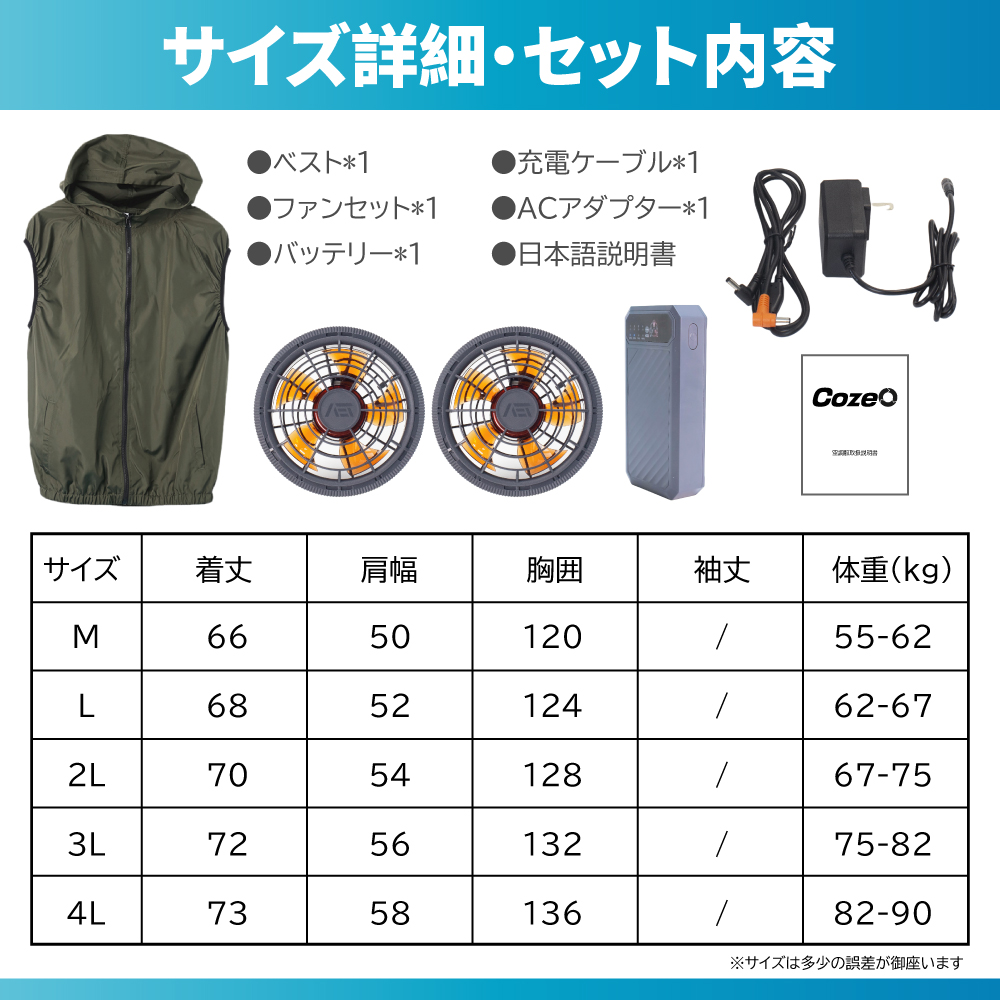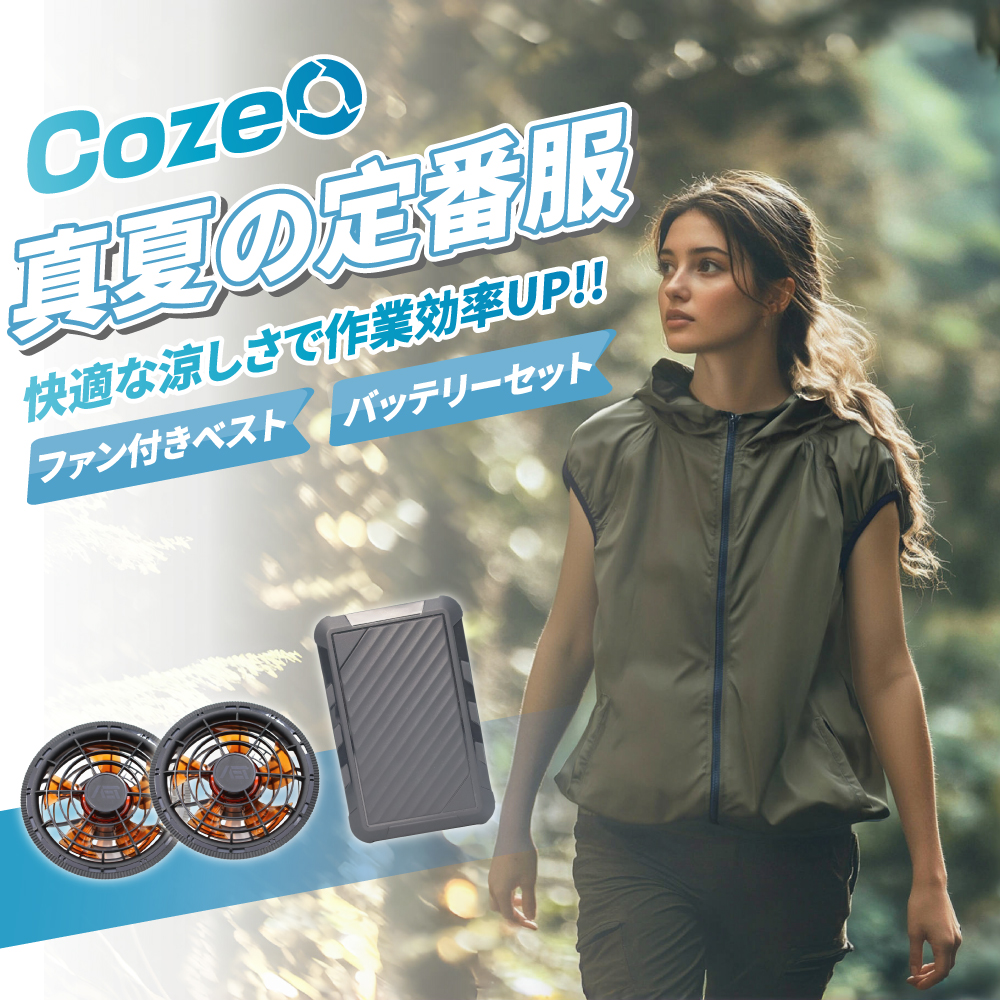 2025年新作 空調ウェア cozeo エアー クールダウンウェアー強力ファン 4段階強風 風量調節可 エアコン服 ファン付きベスト 空調作業服 空調作業着 空調扇風服 UV対策 涼しい 熱中症対策 BCP対策 父の日 プレゼント